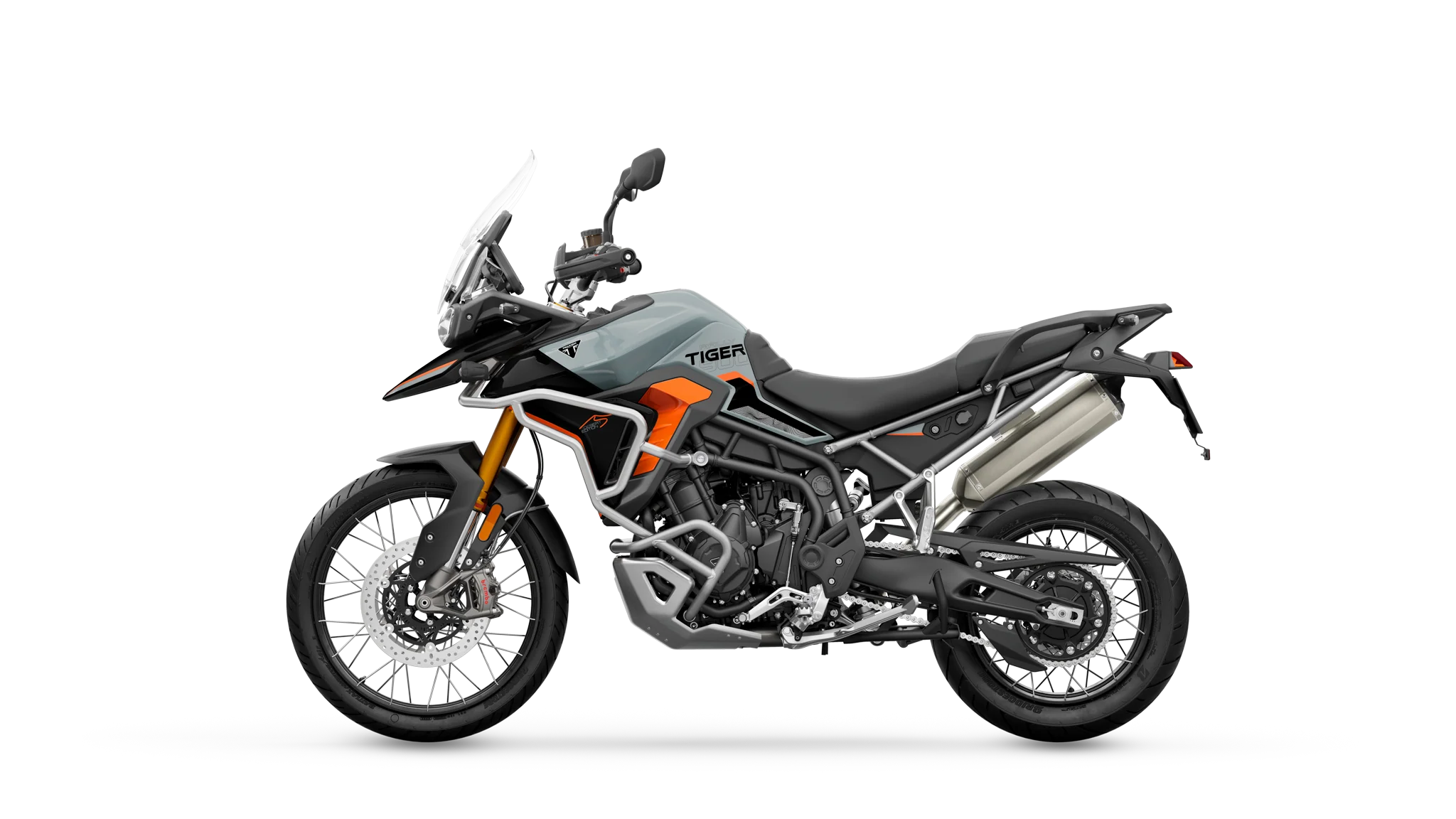 Urban Grey and Sapphire Black bodywork with bold Baja Orange accents create a dynamic, unmistakable adventure presence.
